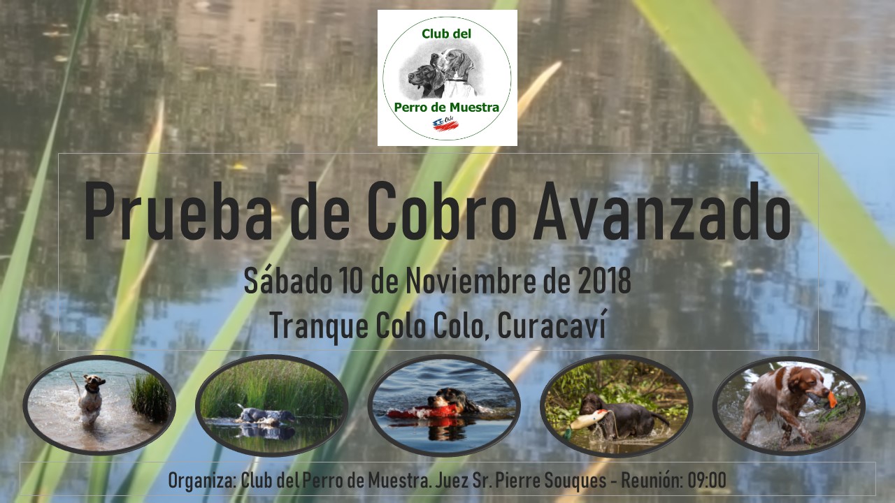 El Club del Perro de Muestra tiene el agrado de anunciar que el día 10 de noviembre de 2018 llevará a cabo una Prueba de Cobro Avanzado, con la que cerrará sus actividades de competencias del año calendario 2018.