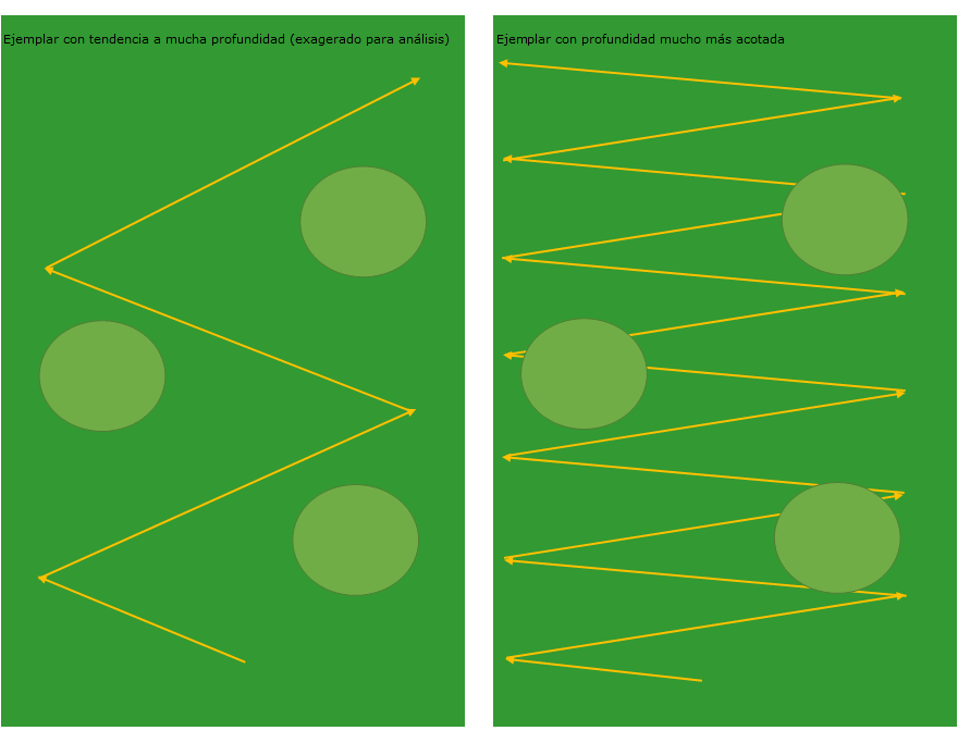 Ojo, en todo momento estamos comparando dos ejemplares de similar amplitud y refiriéndonos sólo a la componente profundidad del recorrido.